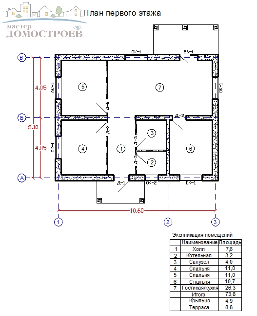 Дом из газобетона 74 м2.